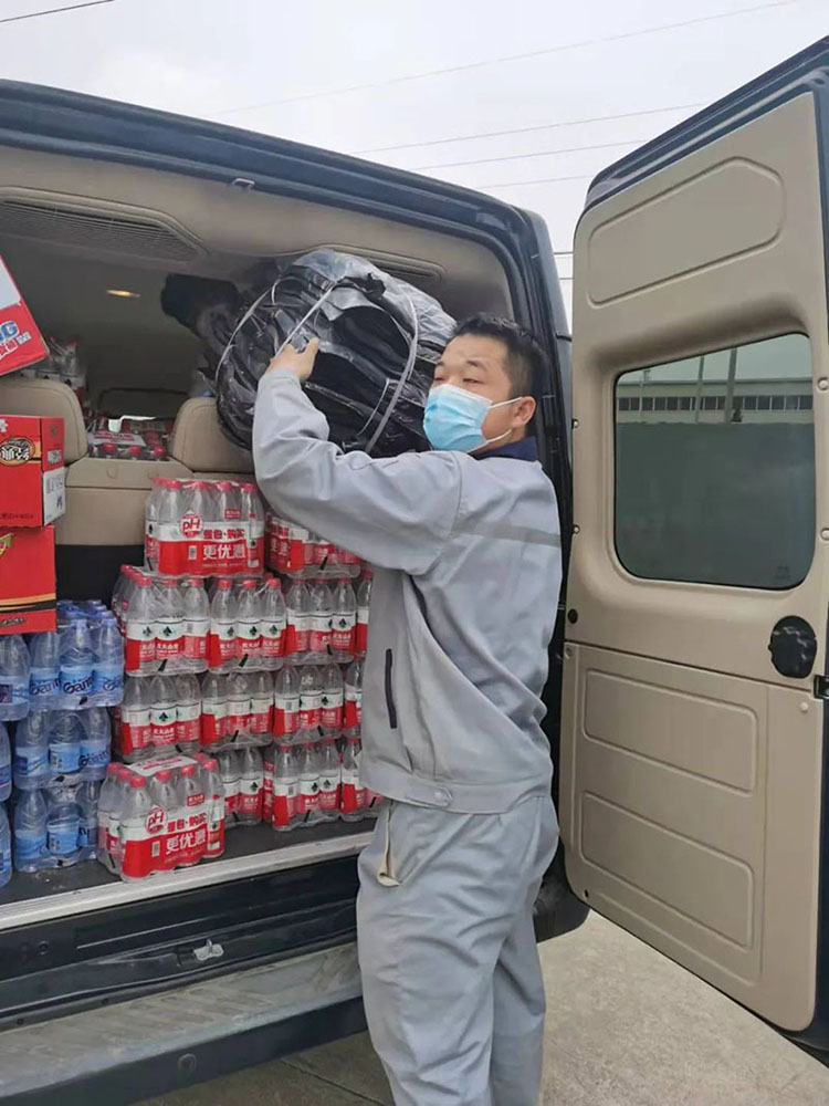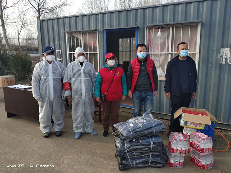 全民抗击疫情,企业责无旁贷。因为这里人们对我们的关爱、因为这里是我们成长的沃土。集团公司要求青岛质德基地,购买一些实用的物质捐献给驻地政府,尽点微薄之力。准备一些水,口渴的时候缓解一下。准备点消毒剂,能够对环境进行消杀。准备点棉服,希望夜里能够给他(她)们带来些许温暖。